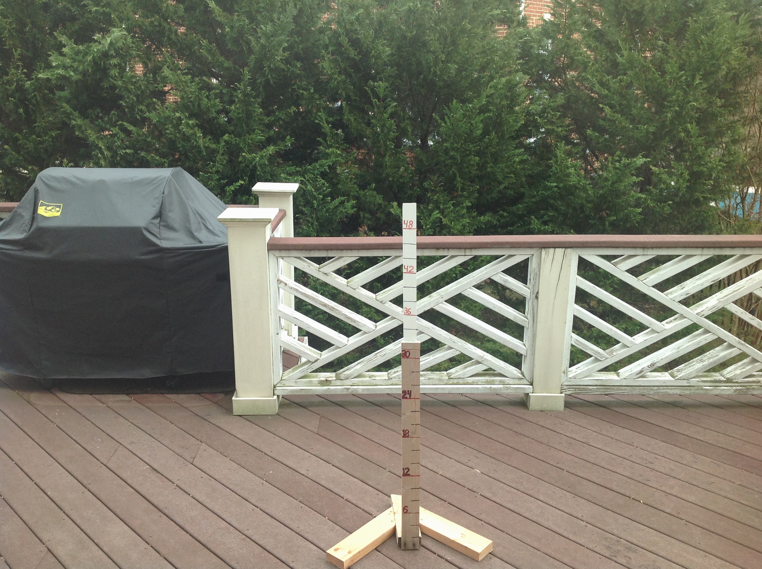So I had to update the snow stick, which previously topped out at 32” or so. It now reaches a full 50”. No way we can break that (if we do, the deck will probably collapse anyway and it won’t matter). I tweeted a picture of the snow stick yesterday, and almost immediately was challenged to post a time-lapse video. Which I thought “no way,” then “maybe,” then “Oh, wait, if I do this….” After a couple hours of playing, I had an old Canon Digital Rebel running off an external power supply, with a Raspberry Pi triggering photos every minute and downloading them to the local SD card. But it crashed after about 5 minutes. I spent some hours last night trying to figure out what was up, but couldn’t make it work – the link between the rPi the camera just stops working after a few photos, whether I use the really cool script I found or just manually capture images.