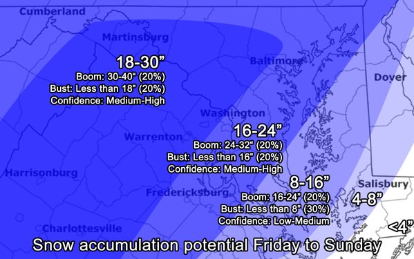 Today, we’re getting a storm that promises to rival or exceed that storm, with the Capital Weather Gang calling for as much as 40 inches in the “best case” scenario (or worst case, depending).