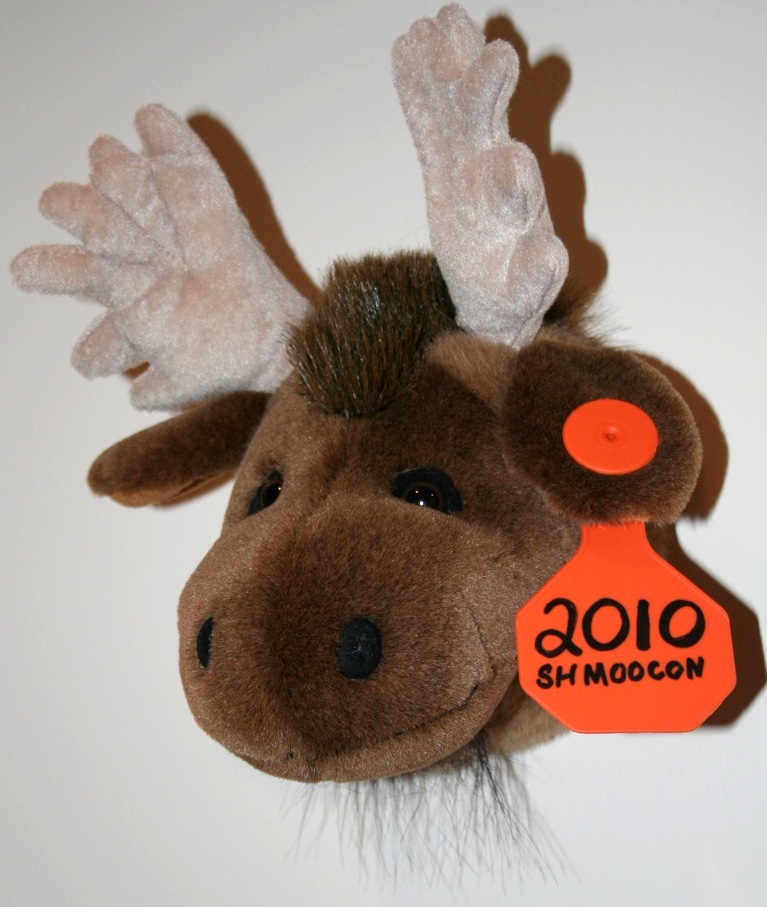 I tell Heidi that we really did work as a team, but that if there’s to be only one prize awarded, I’m content to let it go to Дурак, and to let her decide whether I’d qualify as a runner-up or if we’d just let the next team claim that prize – “It’s your contest, however you want to handle it is fine with me.” They later decide to give us both joint credit, and we both win tickets to the next year’s con. We also get little stuffed moose head trophies to hang on the wall. Finally, G. Mark really surprises us by throwing in free airline flights, which we naturally redeem for tickets to DEFCON.