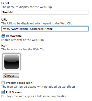 Well, it’s not quite that simple. The IPCU can also create Web Clips, little icons on the device’s home screen that link to external URLs. The only restriction is that the web clip must be set to “full screen” mode (which disables the Safari navigation controls, etc.) Any page can be loaded through a web clip, however, tapping on links within that page doesn’t work. The screen won’t even acknowledge the tap, and the device will not navigate to the link.