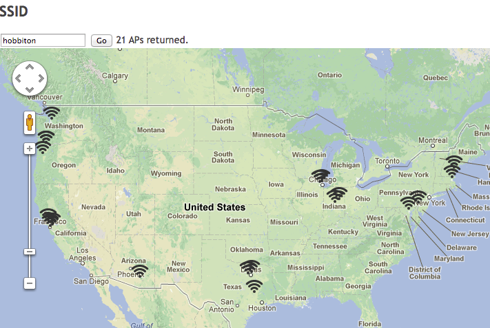 However, another network in the building did show up in Apple’s DB, and I was also able to accurately geolocate several access points near our sister company (iSEC Partners) in Manhattan. Perhaps there hasn’t been enough traffic by our building in the year since we moved in? We just haven’t been reported frequently enough to be included in the database?