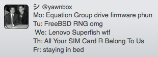 Arguably one of the more interesting developments (aside from the SIM thing, which I’m not even going to touch) was the decision by Lenovo to pwn all of their customers with a TLS Man-In-The-Middle attack. The problem here was two-fold: That Lenovo was deliberately snooping on their customer’s traffic (even “benignly,” as I’m sure they’re claiming), and that the method used was trivial to put to malicious use.